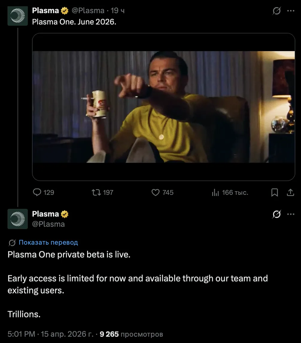 Plasma объявила о запуске закрытой беты своего потребительского приложения Plasma One. Доступ пока ограничен – через команду проекта и существующих пользователей. Полноценный релиз запланирован на июнь 2026 года.